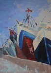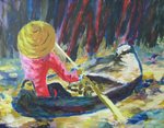 2013Derde schildering van vrouw in boot in Vietnam, op andere wijze geschilderd